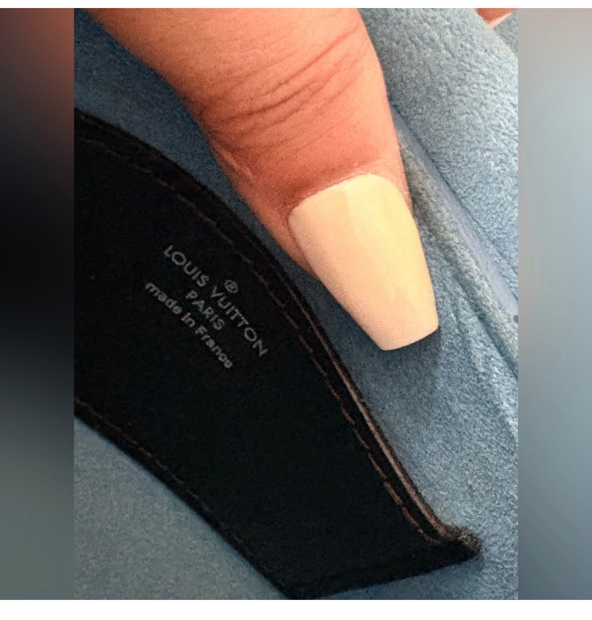 β€’ Design: Signature blue Epi leather with trunk-inspired white Malletage print and an adjustable sliding chain strap.