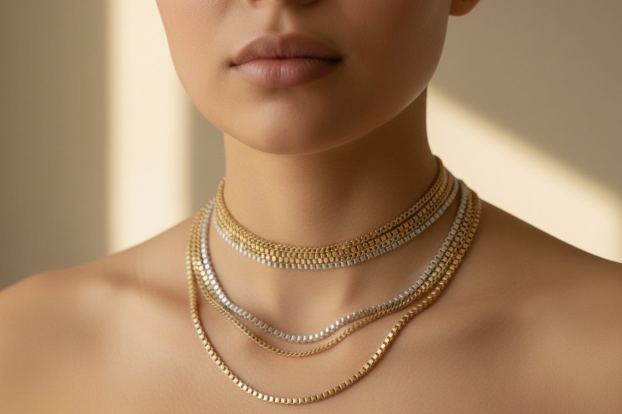 We’ve curated a delicate balance of warm gold and cool silver-toned architectural links. It’s a versatile, mixed-metal statement that catches the light differently from morning coffee to midnight dinner. No tangling, no guesswork—just a refined, "put-together" glow that feels like it was styled just for you.