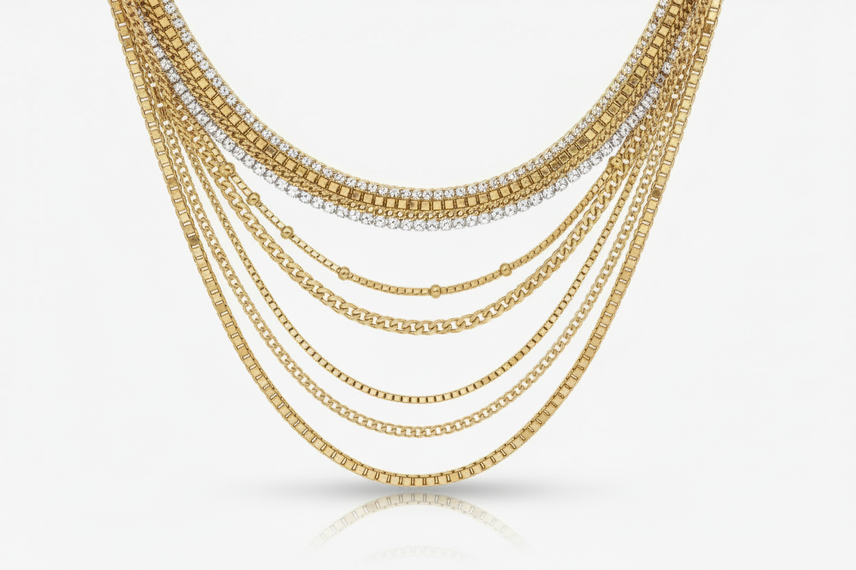 There is an art to the perfect stack, but it shouldn’t feel like a chore. We designed The Medley to give you that sought-after effortless layering in one seamless, high-polish piece. It’s the weight of quality you feel against your skin—substantial yet graceful—designed to drape perfectly whether you’re in a crisp oversized button-down or a silk evening slip.