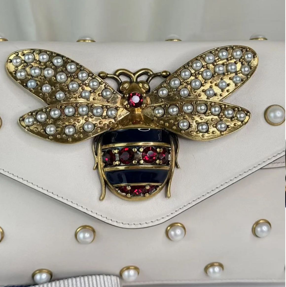 • Gucci’s Queen Margaret collection bridges heritage and modernity — the bee motif draws from Gucci’s archival symbols of the 1970s, reinterpreted in this line.