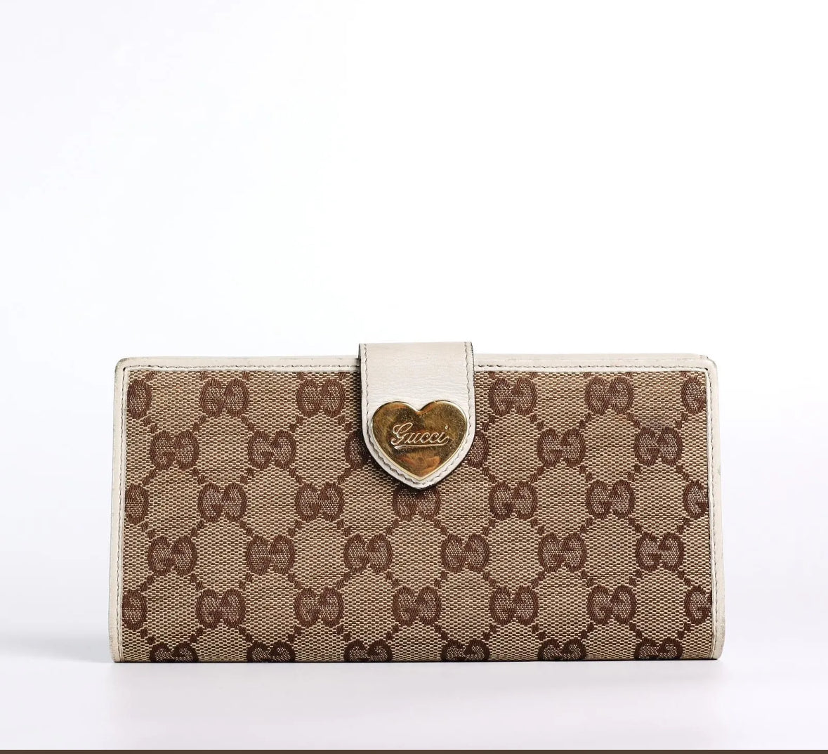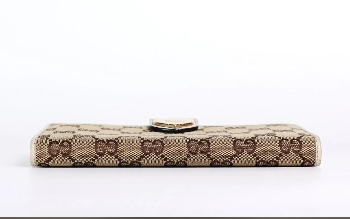 Pre-Owned Gucci GG Beige Brown Canvas & Leather Long Wallet