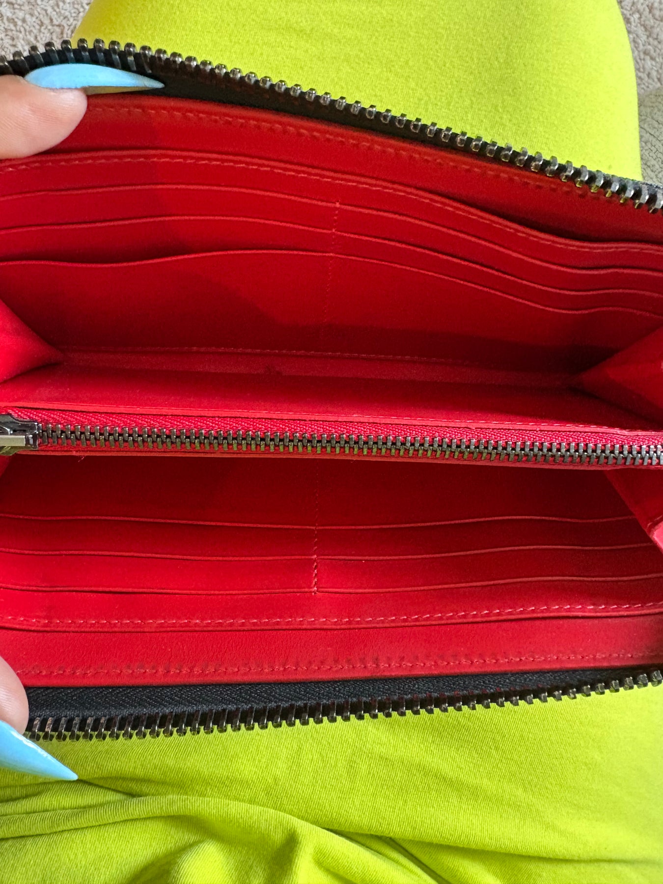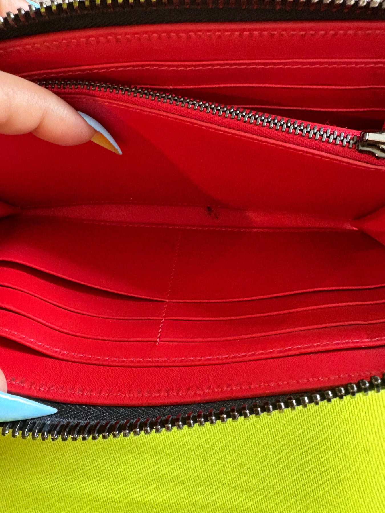 Rare Black Denim Christion Louboutin zippy wallet.