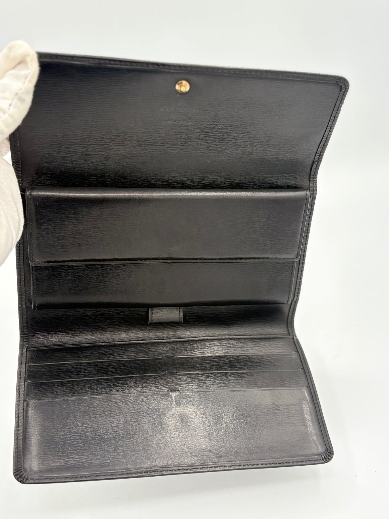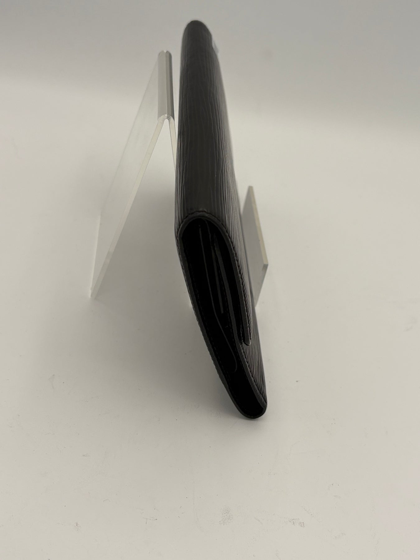 This Louis Vuitton snap wallet offers the perfect combination of luxury, function, and style. The sleek black Epi leather ensures it will complement any outfit, while the continental design makes it highly practical for organizing your items.