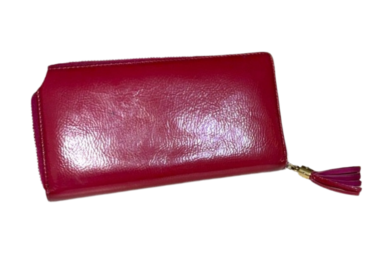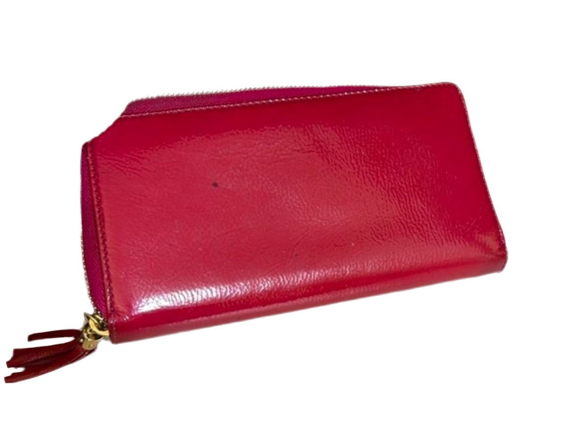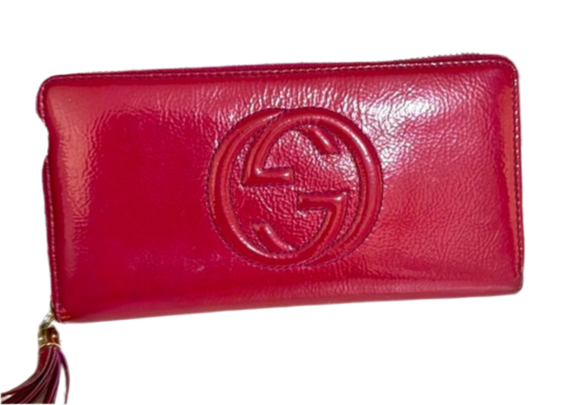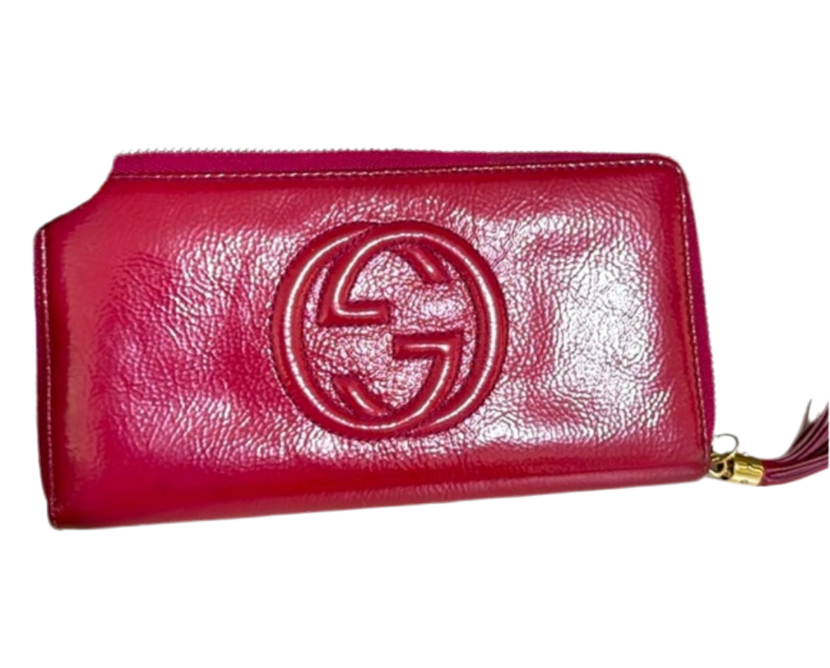 pre loved GUCCI Soho Interlocking GG Tassel Patent Leather Zippy Long Wallet. Some miner wear. Inside is clean. Gold hardware. Zipper working excellent.