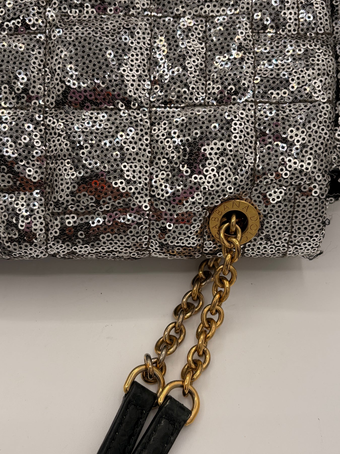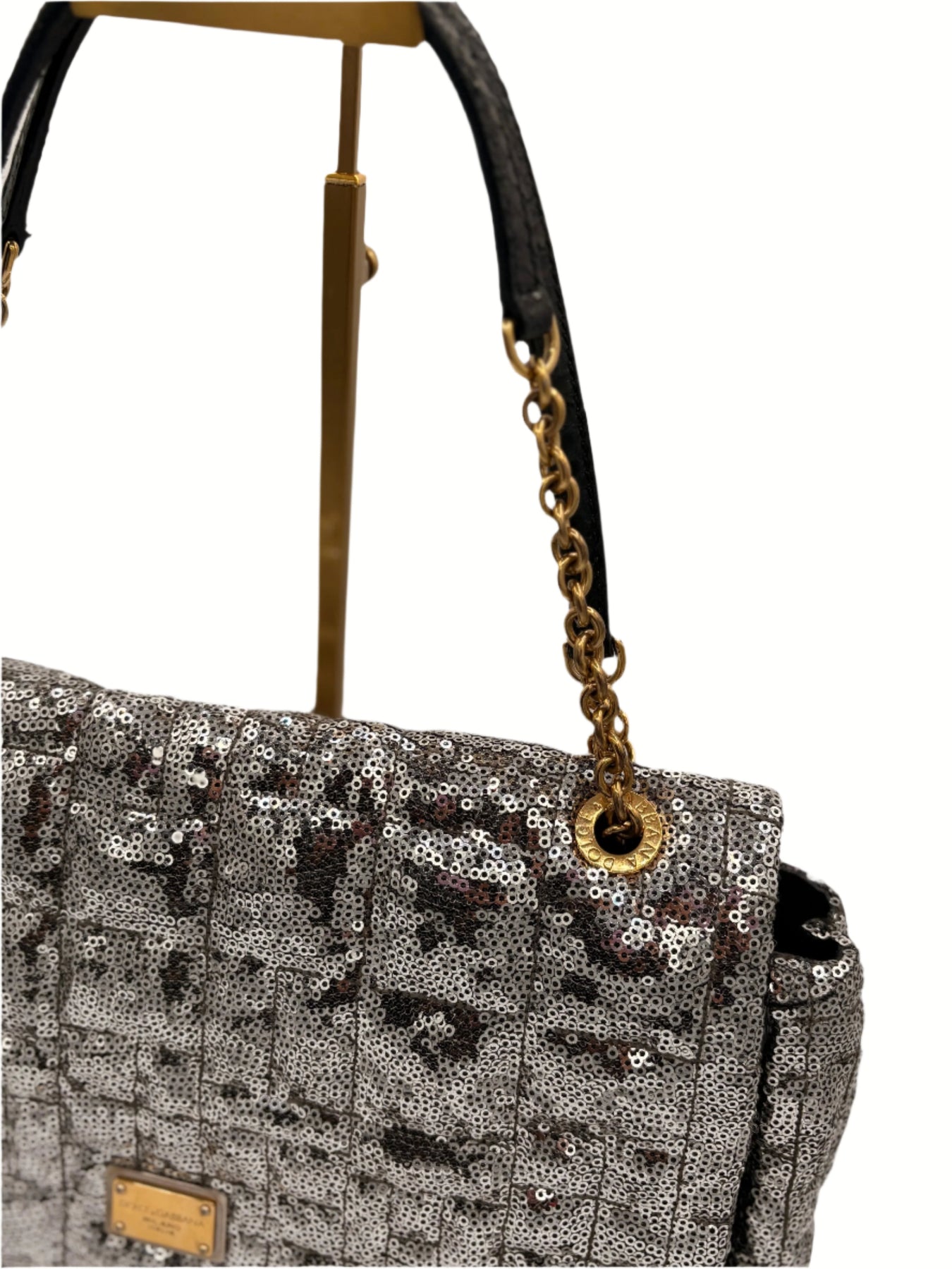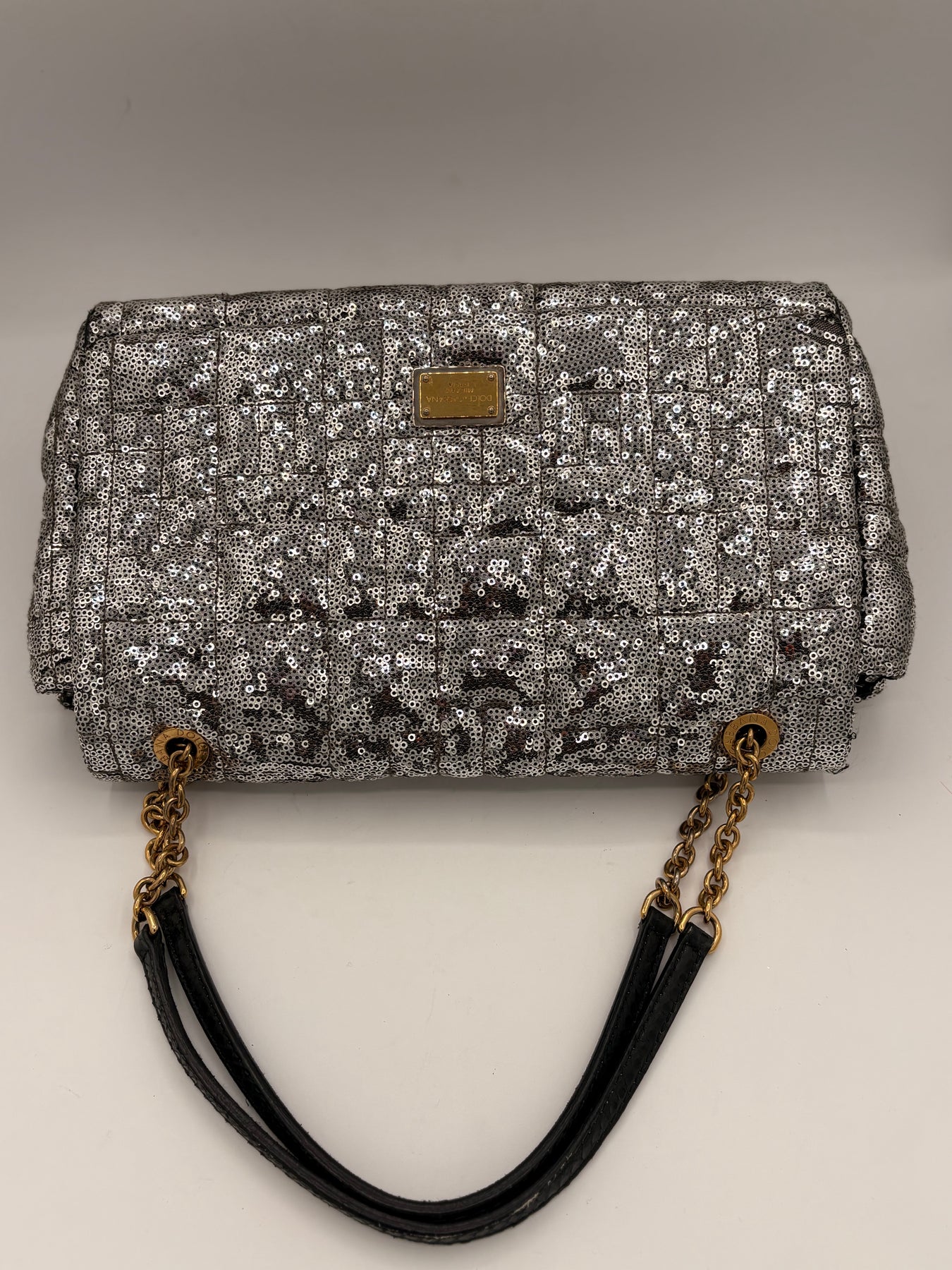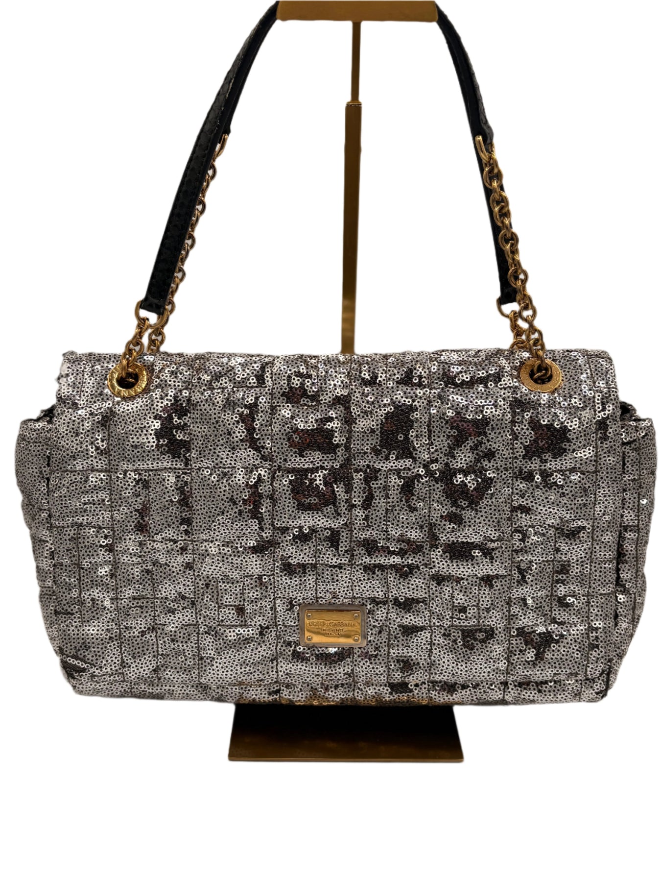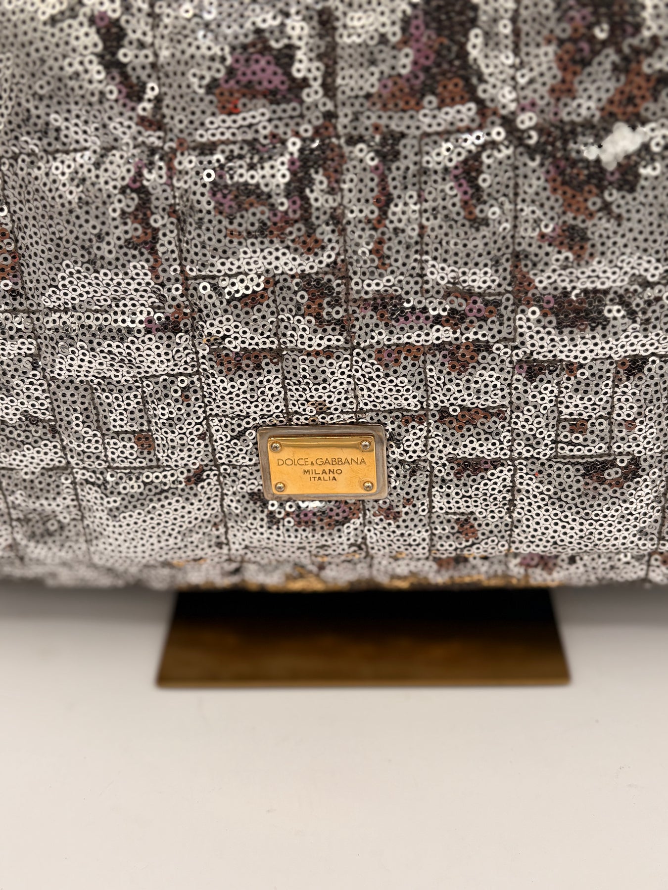 Dolce & Gabbana Miss Charles Shoulder Bag – Silver Sequined Leather